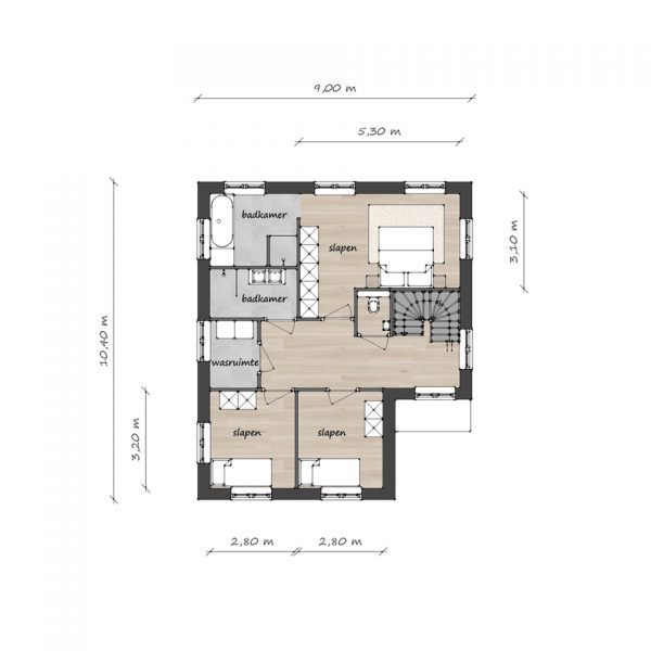 Bornrif is een op de jaren 30 bouwstijl gebaseerd huis. Het huis heeft een hoge goot waardoor de 1e verdieping geen schuine wanden heeft en dus net zo ruim is als de begane grond. De begane grond is speels ingedeeld en heeft een aparte bijkeuken. De verdieping heeft ruimte voor 3 slaapkamers met 1 of 2 badkamers. De zolderverdieping bereik je via een vaste trap en heeft ruimte voor nog een slapkamer en eventueel badkamer. Bornrif B heeft een gemetselde gevel met zwarte gepotdekselde delen.